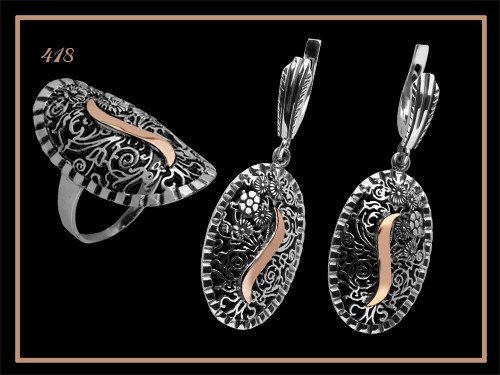 Срібло 925/золото 375 чорне срібло