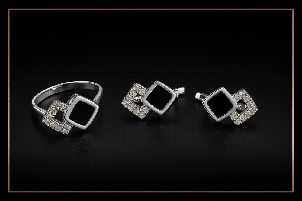 Додаткові вставки:- фіаніт (білий); онікс